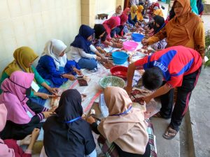 Siswa-siswi beserta Bapak/Ibu Guru dan Pegawai dengan serentak melaksanakan sholat ied di halaman Madrasah.