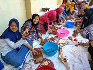 Kurban daging sapi ini kemudian dibagikan ke warga sekitar Madrasah dan siswa yang kurang mampu.