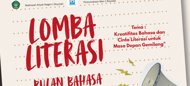 Madrasah Aliyah Negeri (MAN) 1 Boyolali melalui Perpustakaan MAN 1 Boyolali yang bekerja sama dengan bidang literasi kembali menunjukkan komitmennya dalam mengembangkan budaya literasi di kalangan pelajar. Menyambut datangnya Bulan Bahasa tahun 2025, MAN 1 Boyolali secara resmi mengumumkan penyelenggaraan “Lomba Literasi Bulan Bahasa 2025” dengan mengusung tema inspiratif: “Kreativitas Bahasa dan Cinta Literasi untuk Masa Depan Gemilang”.